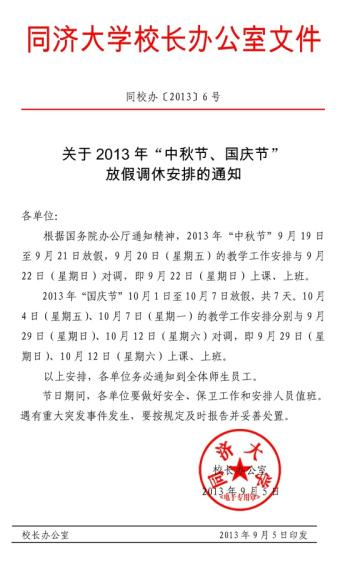 关于2013年中秋节、国庆节放假调休安排的通知