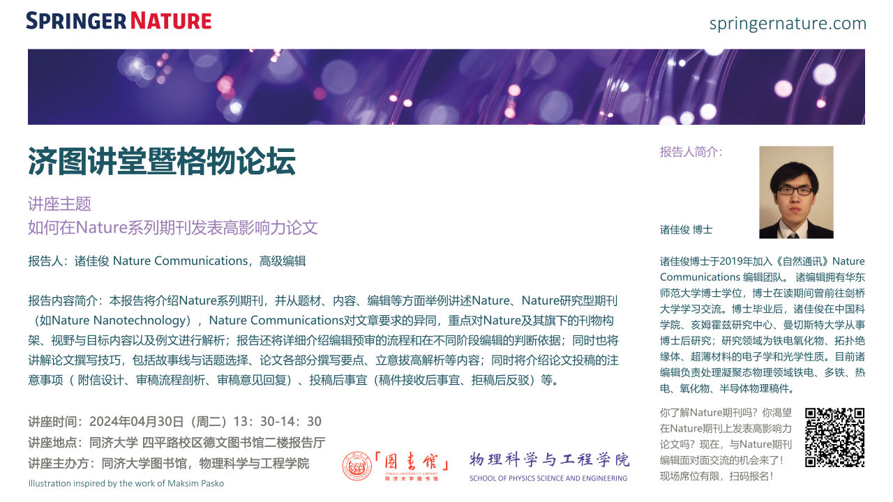 【2024年4月30日】济图讲堂暨格物论坛 | 如何在Nature系列期刊发表高影响力论文