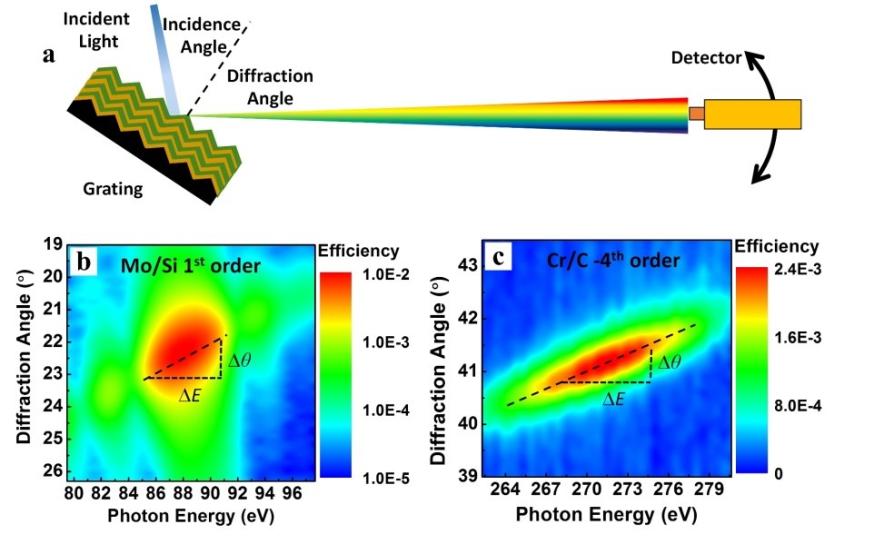 图2 Mo/Si和Cr/C多层膜纳米光栅的色散测试结果