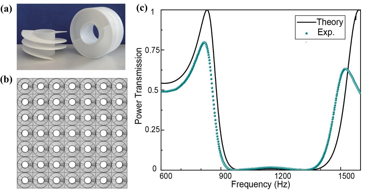 声学研究所的李勇研究员课题组与毛东兴教授课题组合作,在建筑声学的通风隔声窗领域取得重要进展。研究提出了一种以号筒状中空螺旋隔声单元为基础而构建的类镂空雕花薄板状结构,突破了传统隔声窗的高气流压力损失及现有超构隔声窗的窄带隔声等局限,实现了兼具高效通风和宽带隔声的通风隔声窗设计。相关研究成果于2020年4月10日以“Broadband Acoustic Ventilation Barriers”为题发表在国际物理学期刊Physical Review Applied第13卷上 [Phys. Rev. Applied 13, 044028 (2019)]。硕士研究生孙曼为第一作者,毛东兴教授、王旭副教授和李勇研究员为论文共同通讯作者。