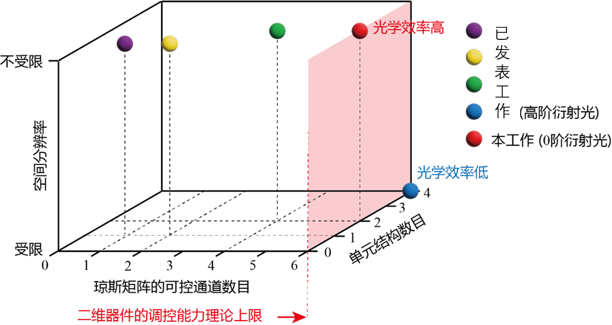 图1. 琼斯矩阵可控通道数目、超表面空间分辨率、单元结构数目对比