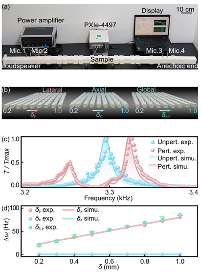 声学研究所李勇教授团队和毛东兴教授团队的王旭教授在连续谱中拓扑束缚态(Topological Bound States in the Continuum,TBIC)研究方面取得进展。团队基于对称性调控,构建了一种具备TBIC的声学波导系统,揭示了TBIC兼具拓扑边界态的强鲁棒性与连续谱中束缚态(BIC)的高灵敏度双重特征,并在透射谱中观测到其对不同扰动的极端各向异性响应行为。相关成果以“Observation of Extreme Anisotropic Sensitivity at Topological Bound States in the Continuum”为题发表于《物理评论快报》(Physical Review Letters)。