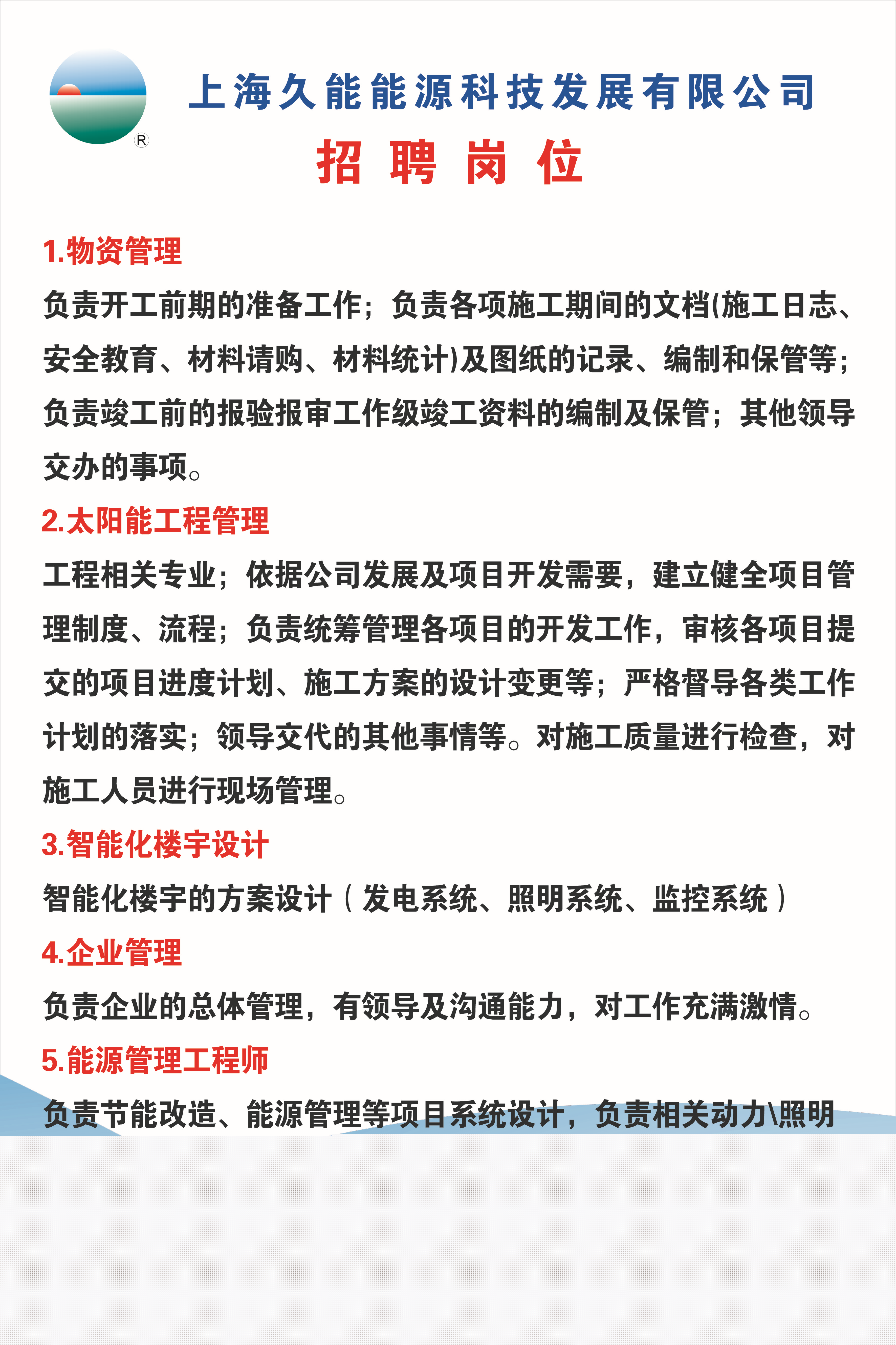 上海久能能源科技发展有限公司 招聘