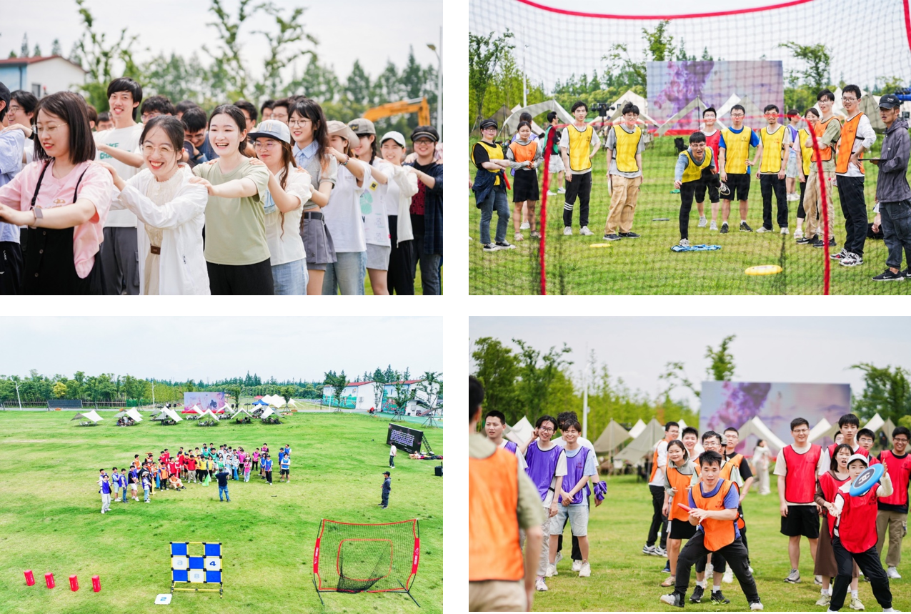 放下背包,动起来吧!教练带大家先做了热身活动,然后随机分组获得“八彩”小队🌈飞盘比赛开始🥏抛接之间笑声不断。