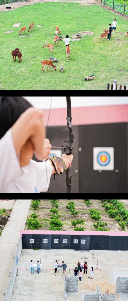 稍事休息补充体力后,大家又投入到各类户外体验活动中。有沉稳的射箭,有的和可爱的动物互动。