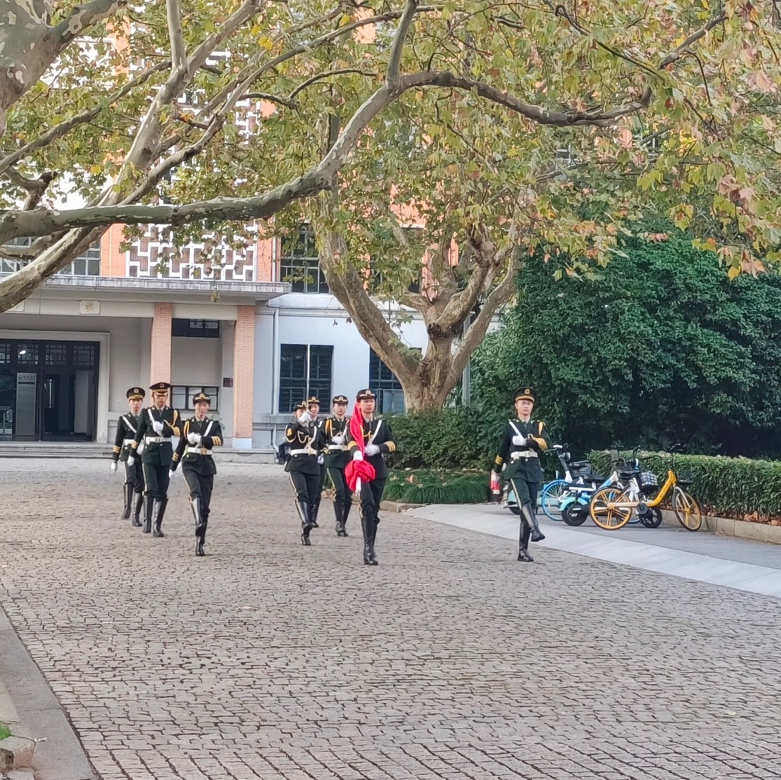 举行升旗仪式,学院党委副书记殷娣娣老师、团委书记李薇老师以及学院2023级全体研究生、2022级全体本科生共同参加。