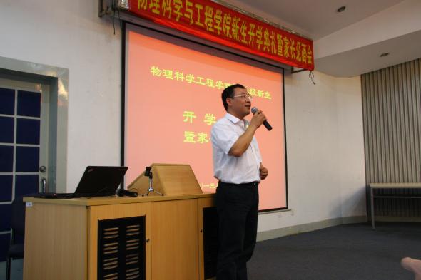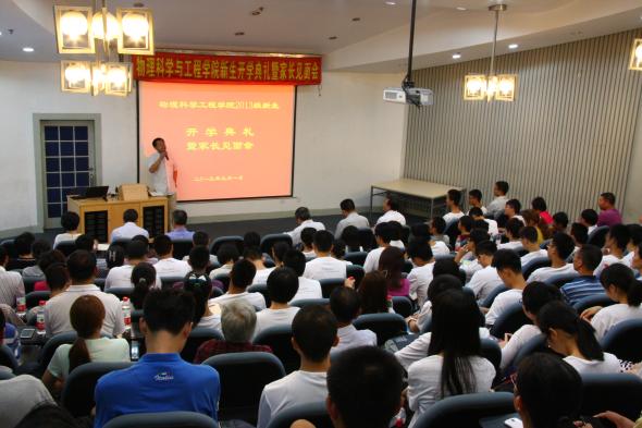 2013年9月1号物理学院在瑞安楼2楼报告厅召开了本科新生开学典礼暨家长见面会。