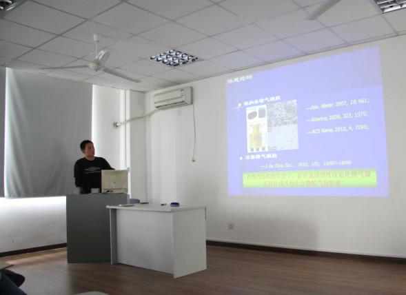 物理系材料物理与化学专业博士陈珂、光学专业博士黄秋实和凝聚态物理专业博士朱秀榕结合研究方向和前沿成果,先后做了题为 《新型非氧化物气凝胶的模板限制反应法合成研究》、《基于多层膜技术的X射线微聚焦波带片研究》和《ICF实验用靶材料及相关靶型的制备研究》的学术报告,并与在场的师生进行了广泛交流。我系系主任王占山教授及党总支书记周斌教授出席论坛并为博士生报告进行点评。王占山教授和周斌教授针对每位主讲博士的优缺点进行了点评,对每一位主讲人提出了中肯的建议。在场研究生针对主讲主题提出自己的疑问,互相交流了在课题中的难点。