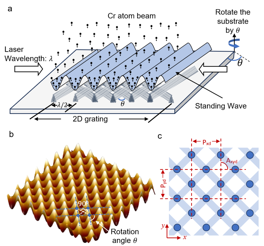 纳米制造,测量先行。研制高精度的纳米级标准物质,是打造高准确度纳米测量传递链,提升国产纳米制造产品质量可靠性的关键。二维铬纳米栅格标准物质突破性地采用分步沉积原子光刻技术,制备难度较大,可直接溯源到自然界量子化物理常数(铬原子跃迁频率),角度绝对准确性在0.001°量级,相当于把一个蛋糕按扇形均分成三十六万份。