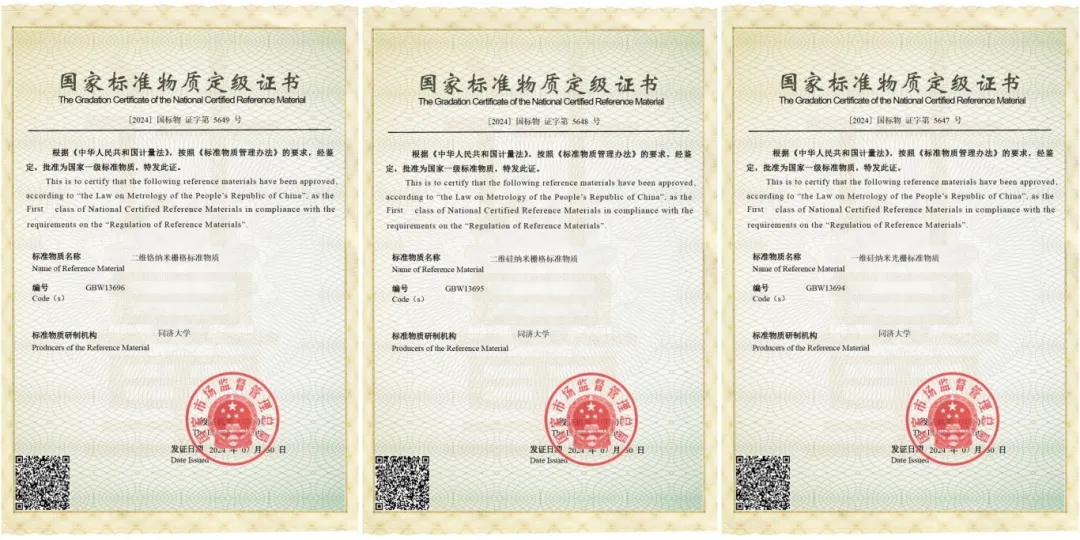本次获批的3项一级标准物质,是国家市场监督管理总局批准的研究成果,正在用于市场监管总局组织的首批国产扫描电子显微镜计量测试评价工作。该成果在国内实现了纳米测量领域的扁平化计量,避免传统逐级量值传递方式造成的误差累积放大,能够通过在线校准将高精度计量数据直接传递到企业计量现场,为我国纳米制造产业高质量发展提供有力支撑。