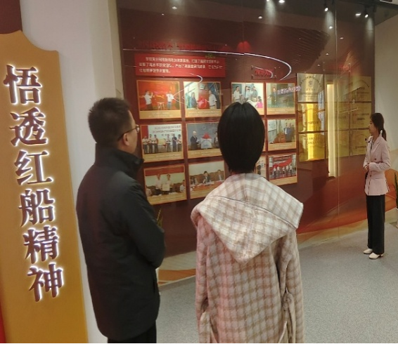 11月19日下午,师生一行抵达嘉兴大学,受到嘉兴大学统战部副部长邹巍的热情接待。在邹部长的带领下,师生一行前往嘉兴大学校史馆、育人成果展示馆进行参观学习,通过实地走访、聆听讲解和互动交流,师生们深入了解了嘉兴大学百余年的办学历史和红色文化育人成果,对以“开天辟地、敢为人先的首创精神,坚定理想、百折不挠的奋斗精神,立党为公、忠诚为民的奉献精神”为核心的红船精神有了更深刻的体悟。此次参观活动不仅加深了三位同志对嘉兴大学历史与传统文化的了解,更通过沉浸式的红色教育,让红船精神深入人心,为师生提供了一次深刻的思想洗礼和初心重温。